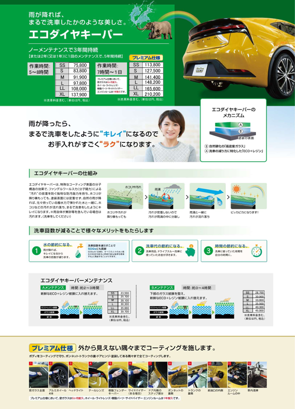 コーティングに必要な硬化時間は施工時間の中に含まれていますので、施工が終わってお帰りの際、雨に濡れてもコーティングの品質に影響はありません。