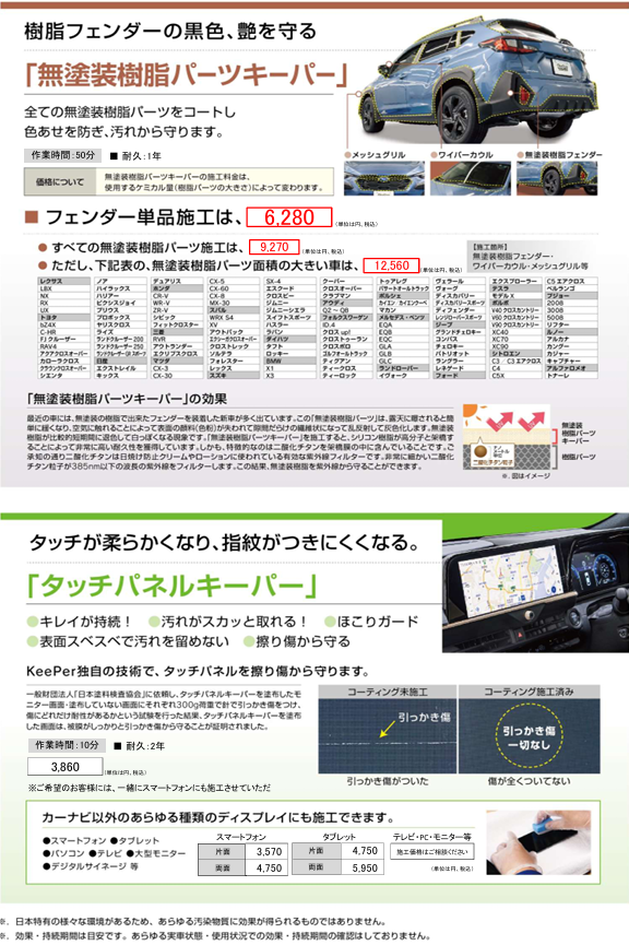 新車のキーパーコーティングはWeb割引との併用で10%OFFになります。