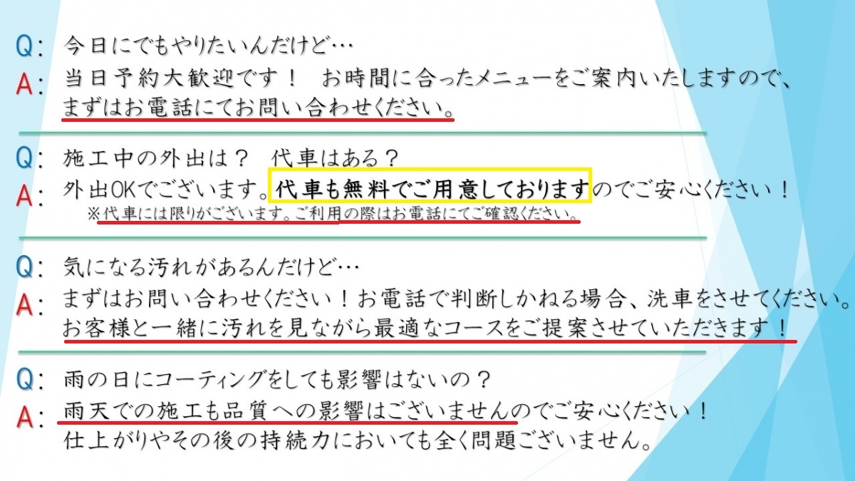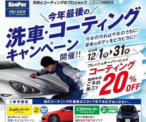 キーパーコーティングをお考えのお客様は是非当店にお越しください。