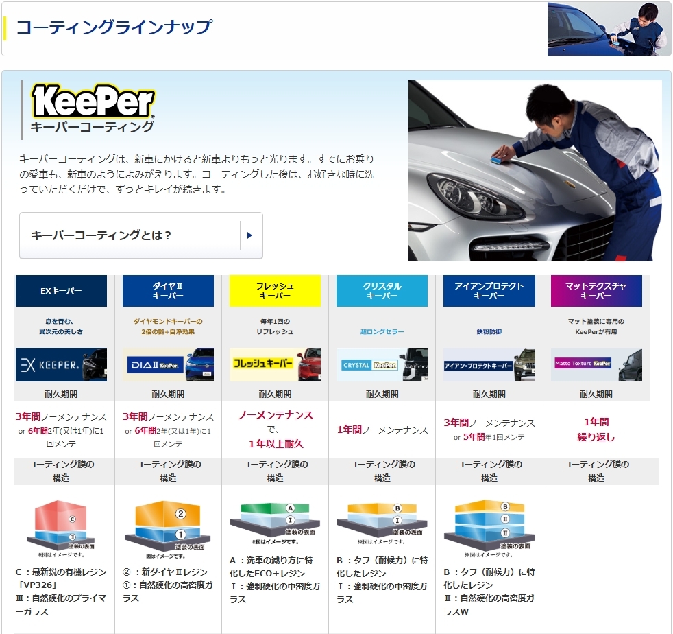キーパーコーティングメニュー
