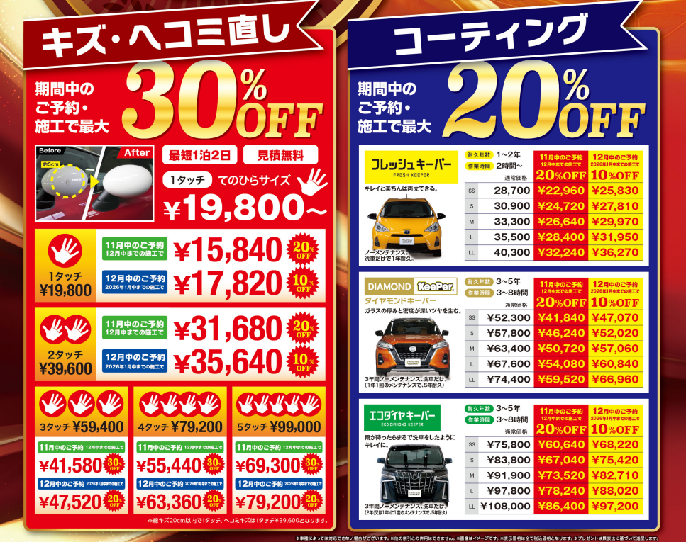 コーティング予約は11月中がとってもお得♪