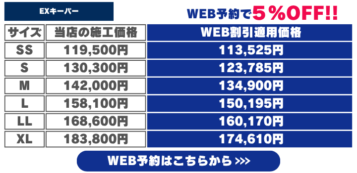 施工金額: SSサイズ ⇒ 17,400円 Sサイズ ⇒ 19,500円
