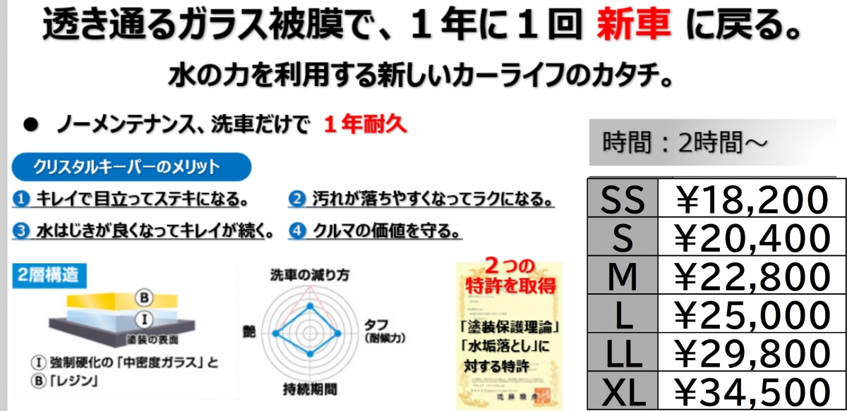 それと、手洗い洗車の仕上がり違う(透明感・水シミを作らない)純水機設置店舗です。
