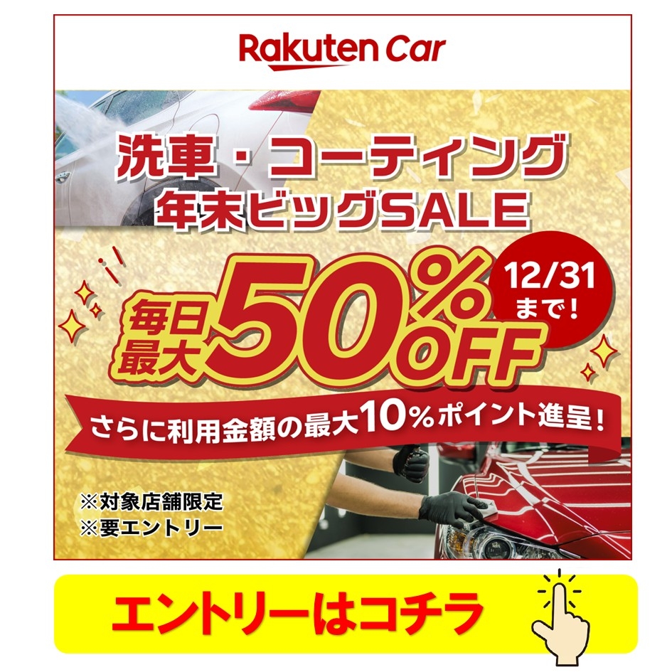 ★特典2★ 手洗い洗車・コーティングで実施金額の最大10%贈呈(但し、事前エントリーが必要です。)