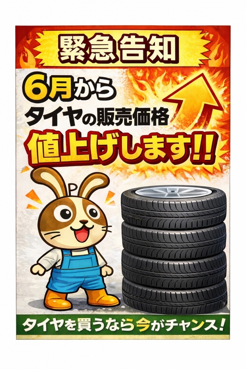 タイヤメーカーが6月より値上げを発表!! 購入するなら今でしょ!!