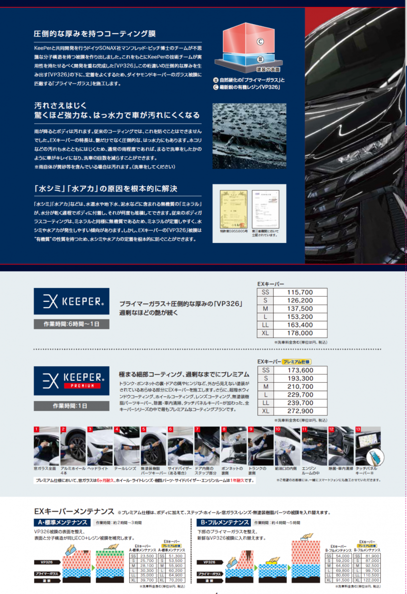 ☆EXキーパー取扱施工店☆ ※予約が入ってからの溶剤発注と なりますので施行日の 1週間以上前にご予約が必要です。