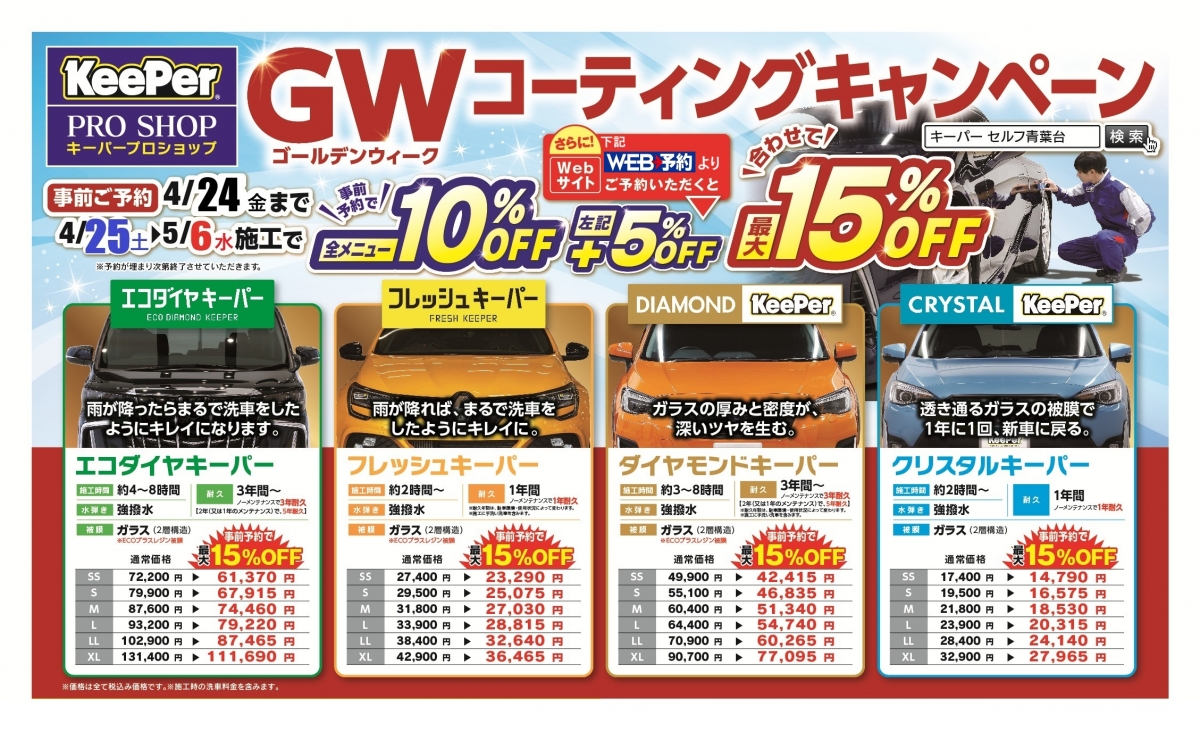 keeperプロショップ青葉台SSは、コーティング最上級資格者が3名在籍する特別なコーティング専門店です。 温度・湿度管理の出来るコーティングブースで、お客様の愛車の輝きを守るお手伝いを致します。