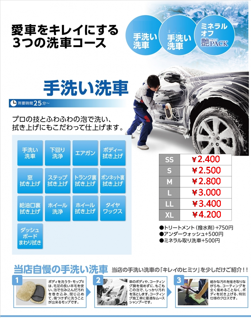 手洗い洗車or室内清掃