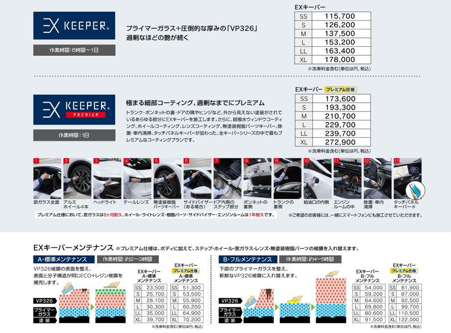「密閉型ブース」が完成し、2022年5月1日よりコーティング作業をすべて室内で行っております。 室内での湿度管理、純水を使っての作業を徹底し品質を極限まで高めております。 施工時間、硬化時間の掛かる「Wダイヤモンドキーパー」「エコプラスダイヤモンドキーパー」「EXキーパー」に関しては確実に品質に差が生まれます。 特に「EXキーパー」に関しましては密閉型ブースでの施工が原則となっており、当店の設備で行うことで商品の性能を100%発揮できます