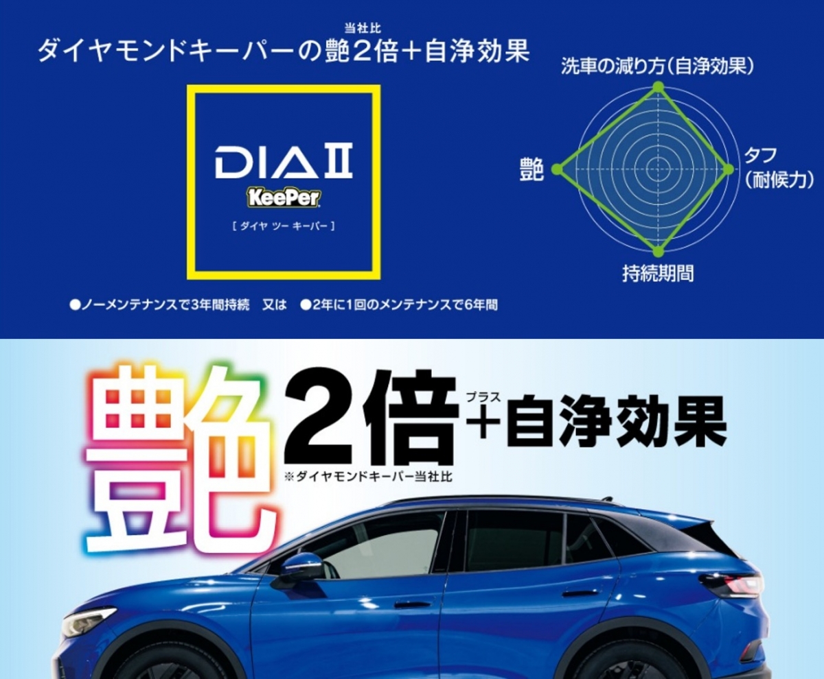エコダイヤモンドキーパーは ・ノーメンテナンスで3年間 ・2年(または1年)に1度のメンテナンスで5年間持続 1層目の「高密度ガラス」で深いツヤと耐候力を生み、2層目には”汚れ”の密着を防ぐ独特な防汚能力を持つ「エコプラスレジン」で、ツヤ・輝きも最高!ダイヤモンドキーパーシリーズで「一番汚れにくくなる」コーティングです。 雨が降ったら、まるで洗車をしたように”キレイ”になるので、お手入れがすごく”ラク”になります。
