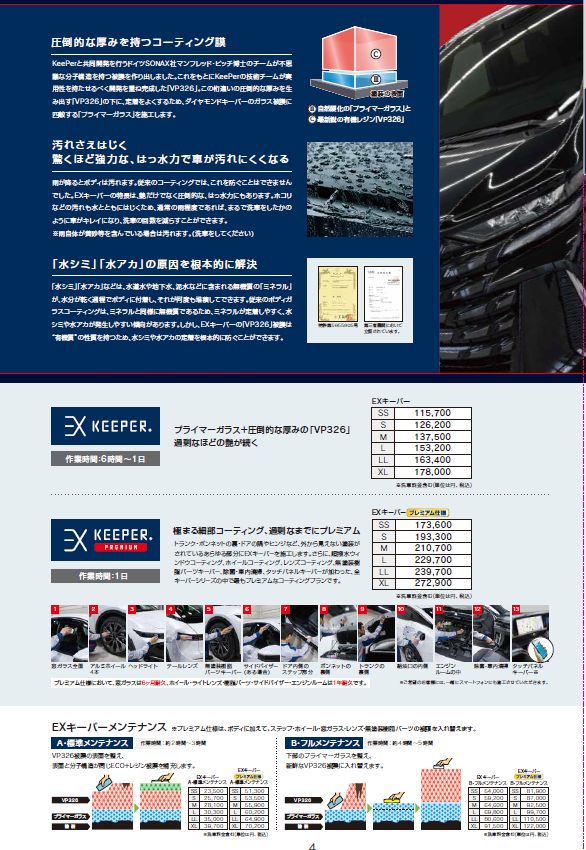 詳しくは上の画像をクリック!!密度の濃い2層のガラス被膜と、防汚性に優れたレジン被膜がボディを強力に保護。