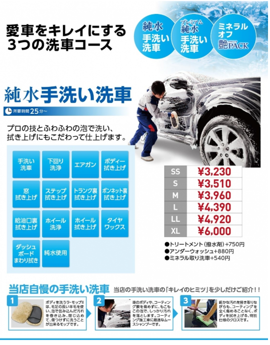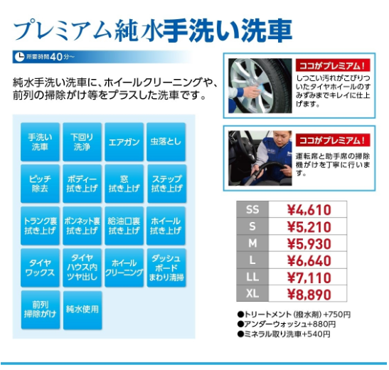 誠に勝手ながら、2026年3月1日より手洗い洗車、プレミアム手洗い洗車の価格改定を実施させていただきます。