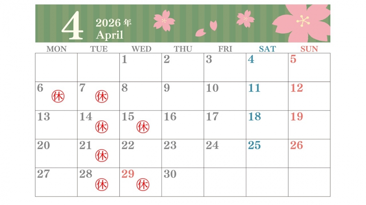 - 定休日