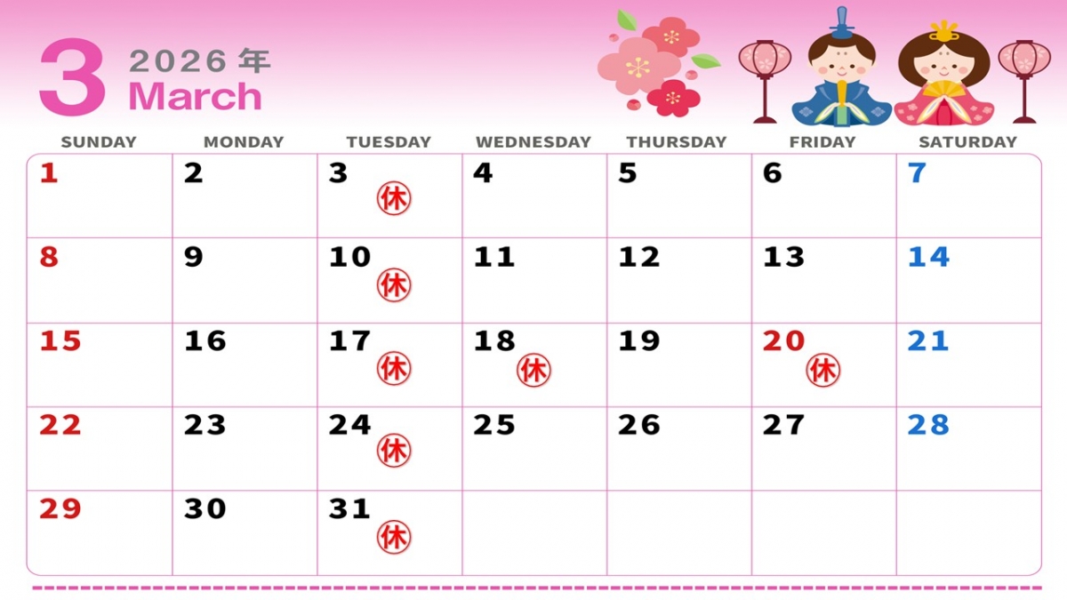 - 毎週火曜日 第3水曜日 祝日