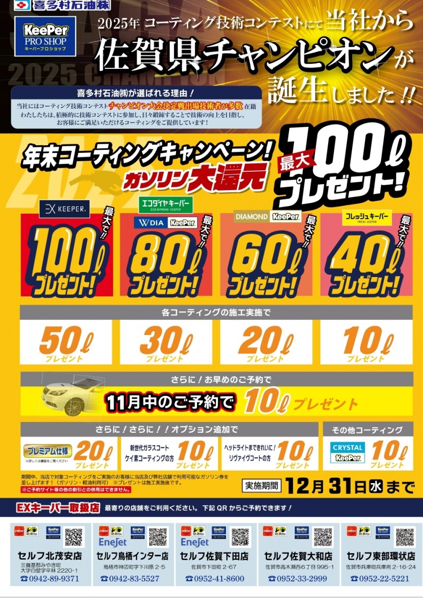 喜多村石油(株)Dr.Driveセルフ志免店、コーティングプロショップ志免店