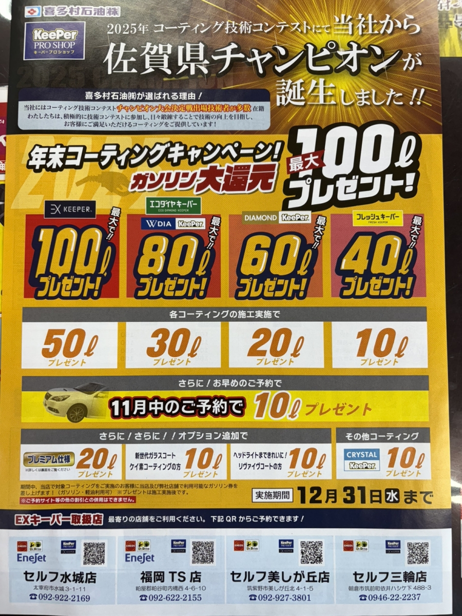 さらに11月中の事前ご予約でさらにガソリン券が貰えるキャンペーンとなっております!