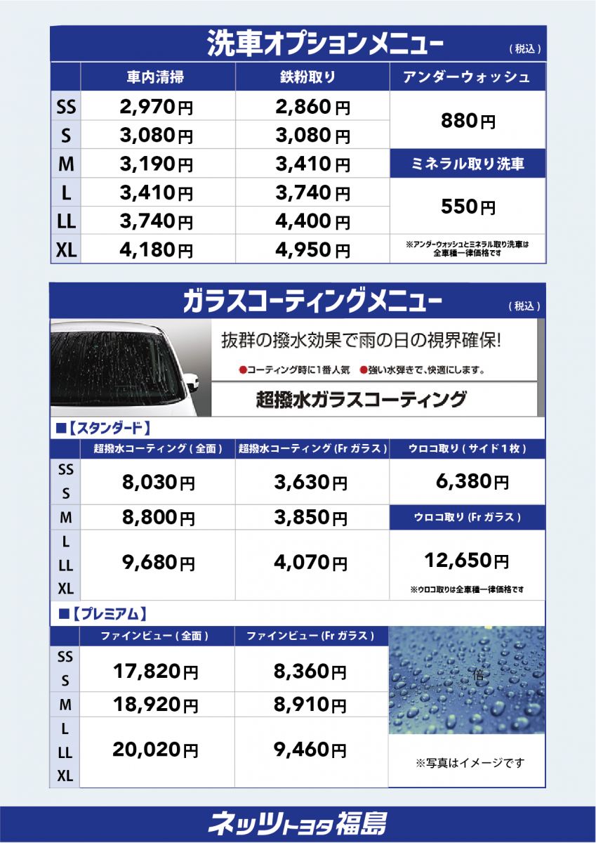 - 洗車・コーティング営業時間