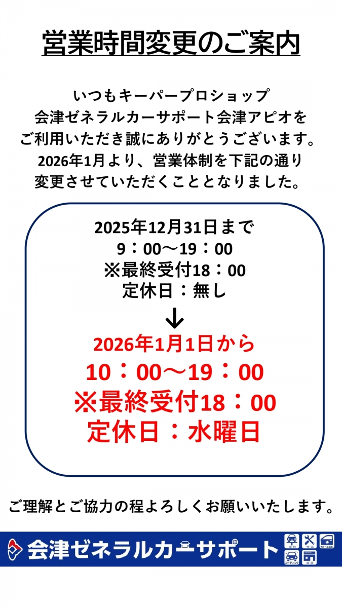 - 洗車・コーティング営業時間