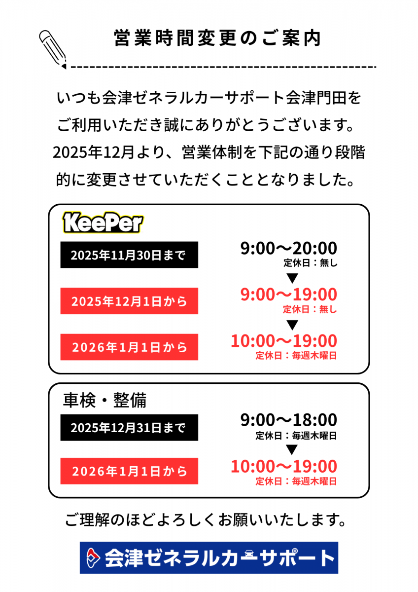 ようこそ! 会津ゼネラルカーサポート門田店のHPへ!