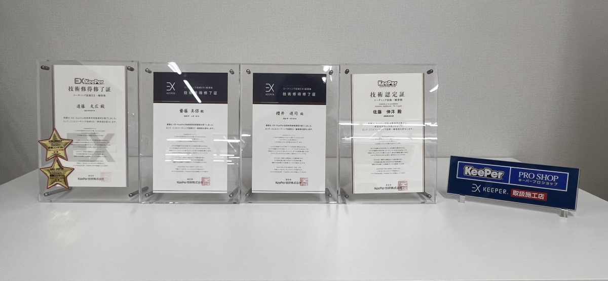 EXキーパー資格者三名、キーパー一級資格者一名が在籍している、愛車を綺麗にするプロフェッショナル集団です。