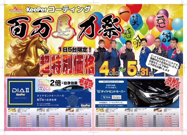 春のキーパーコーティング百万馬力祭のお知らせ