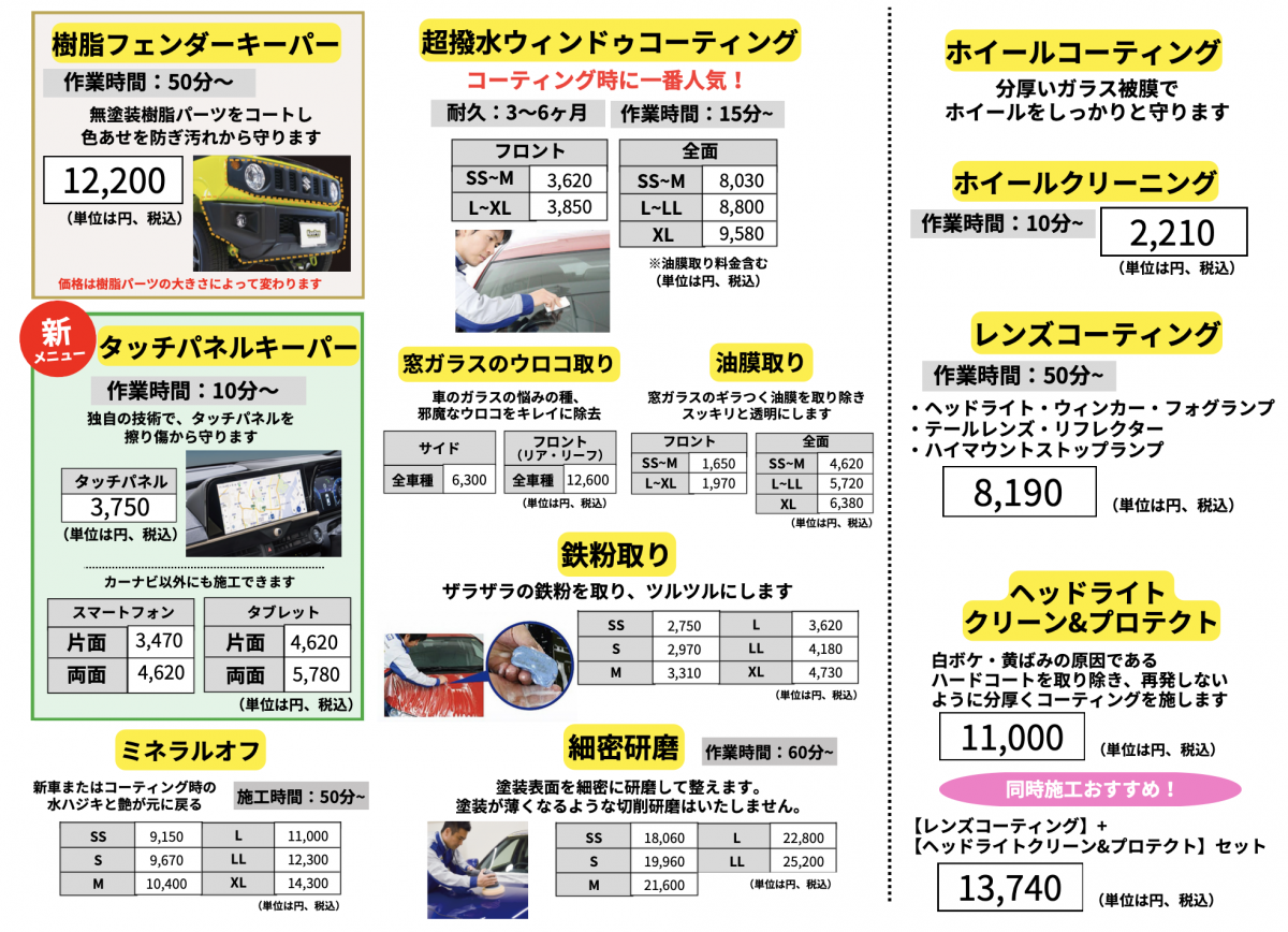 お気軽にお試しいただけるコーティングメニューがたくさんあります✨
