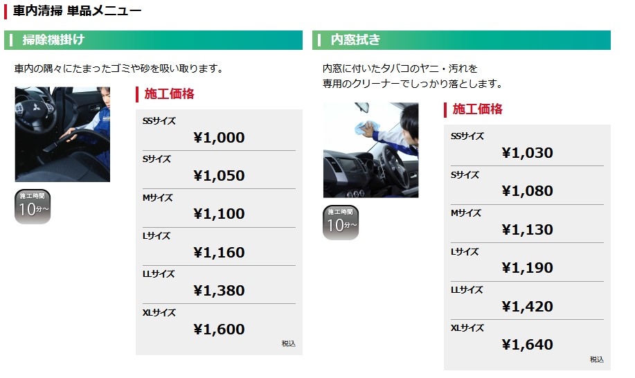 車内清掃メニューのご紹介
