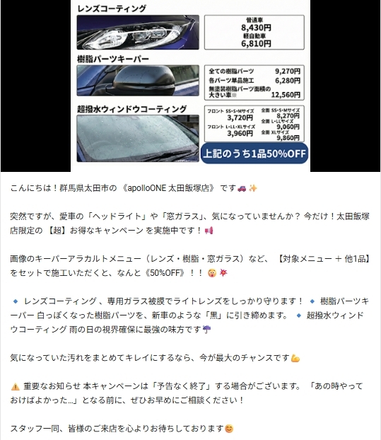 - 洗車・コーティング営業時間