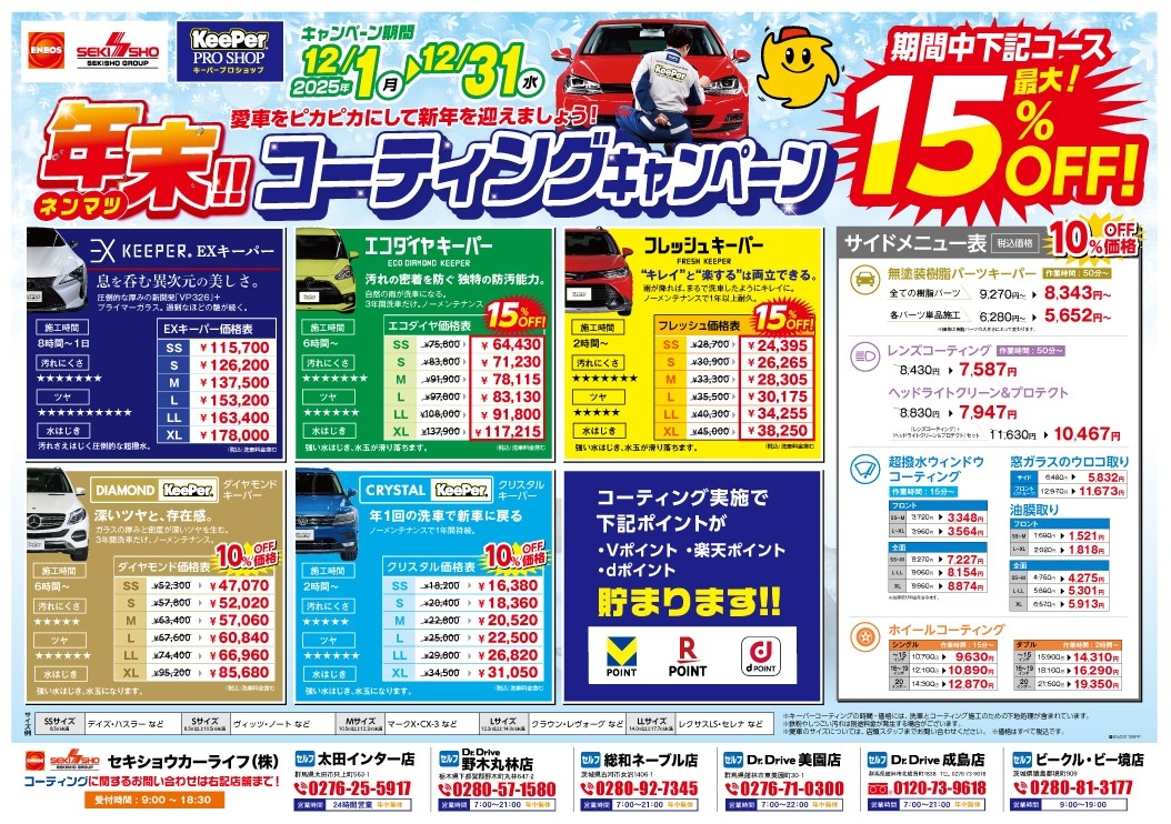 12月1日~12月31日まで、キーパーコーティングキャンペーンを開催!!