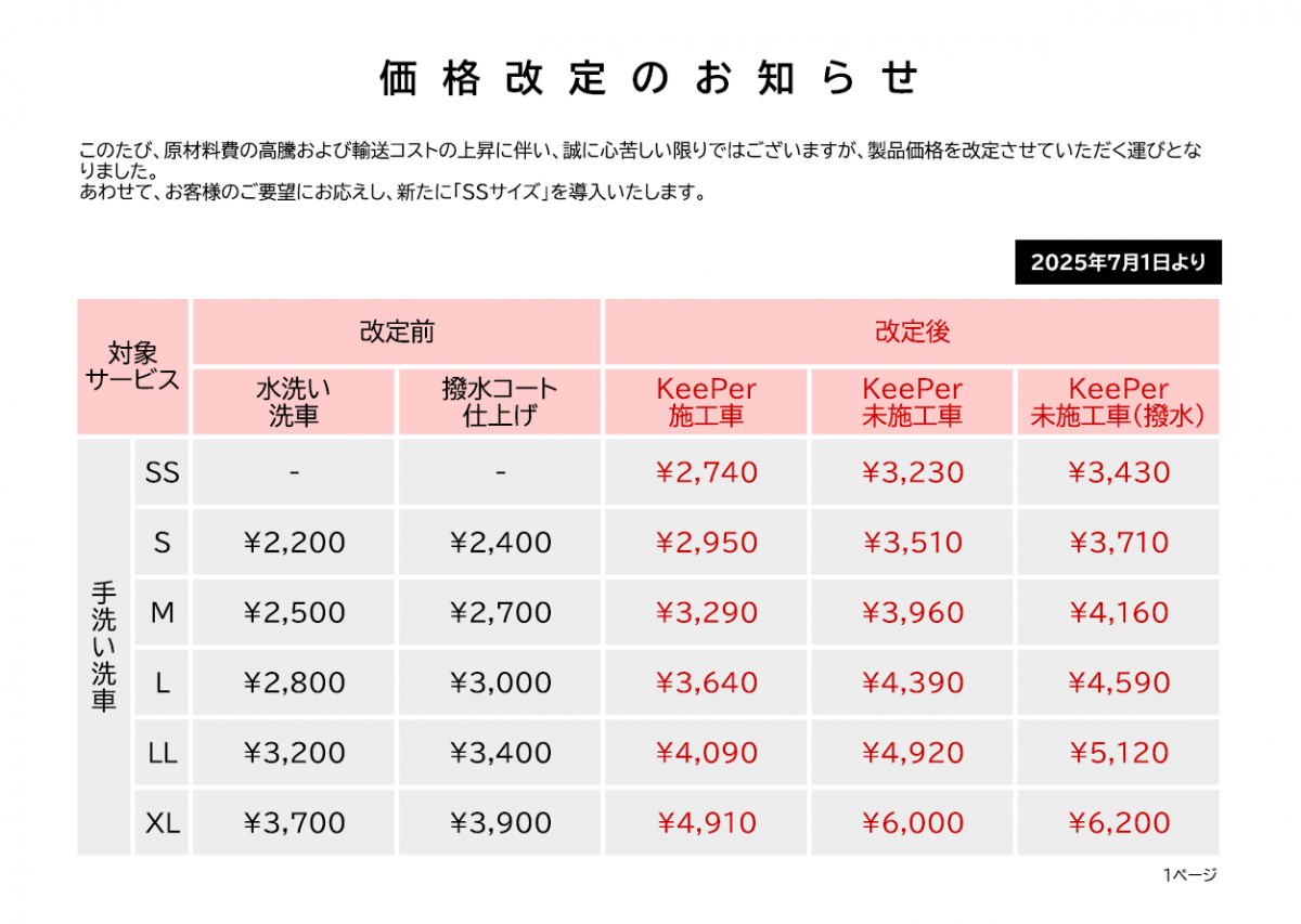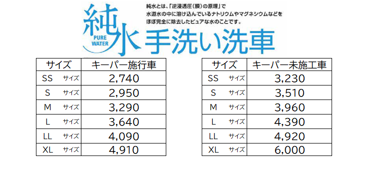 純水手洗い洗車・キーパーコーティング の価格を2025年7月1日より改定させていただく運びとなりました。