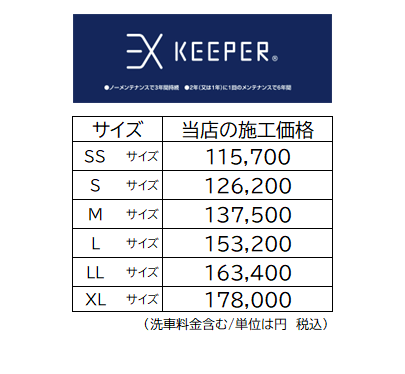 ※EXキーパーは新車用コーティングの為、納車1ヶ月以降もしくは1000km以上走行の車は、