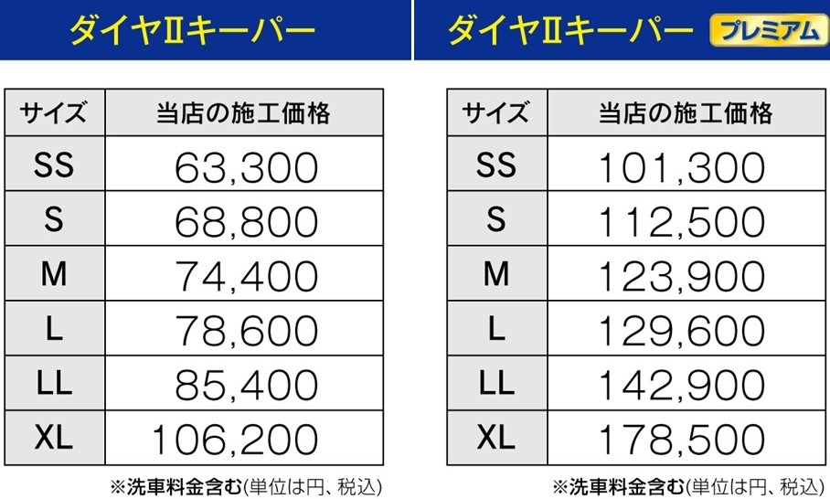 EXキーパー・エコダイヤキーパー・Wダイヤモンドキーパー・ダイヤモンドキーパーのメニューをご選択の場合は、代車をお貸出しします(他のメニューでも施工時間が長い場合はご利用可能です)。利用希望は事前に店舗へお問い合わせください。