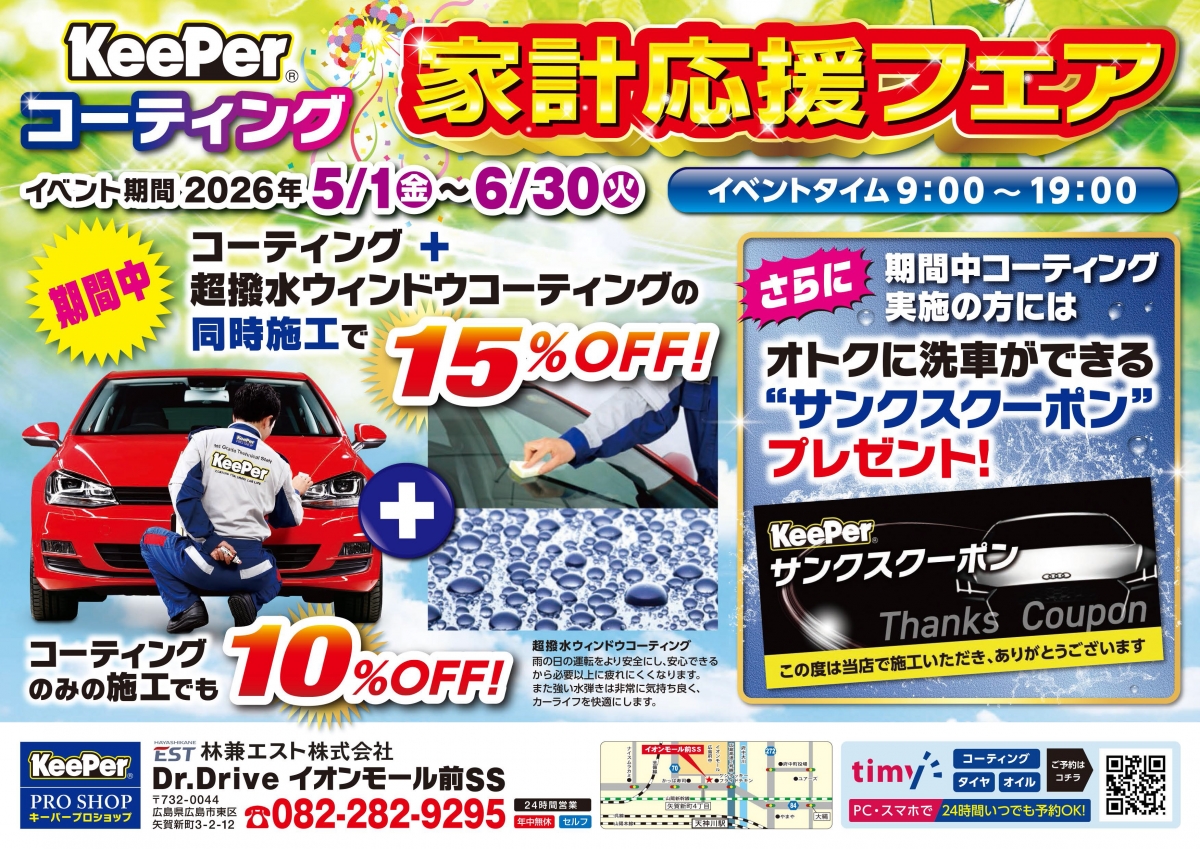 毎月、10日、20日、30日はお客様感謝デー♪ 給油も洗車もコーティングもポイント5倍で貯まります♪ イオンモールにお越しの際はお立ち寄りください♪ WEB予約割あります!ご予約はこちらから↓↓↓