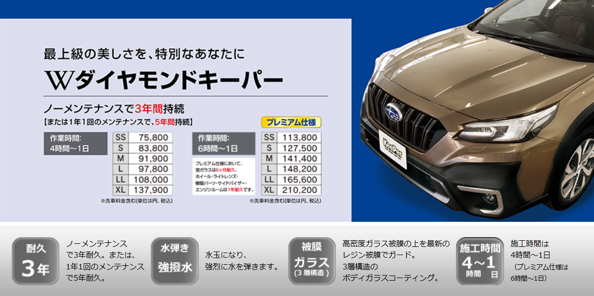 最上級の美しさを、特別なあなたに。ガラスの膜が2倍の厚み、2倍の輝き。ダブルダイヤモンドキーパー☆☆☆☆