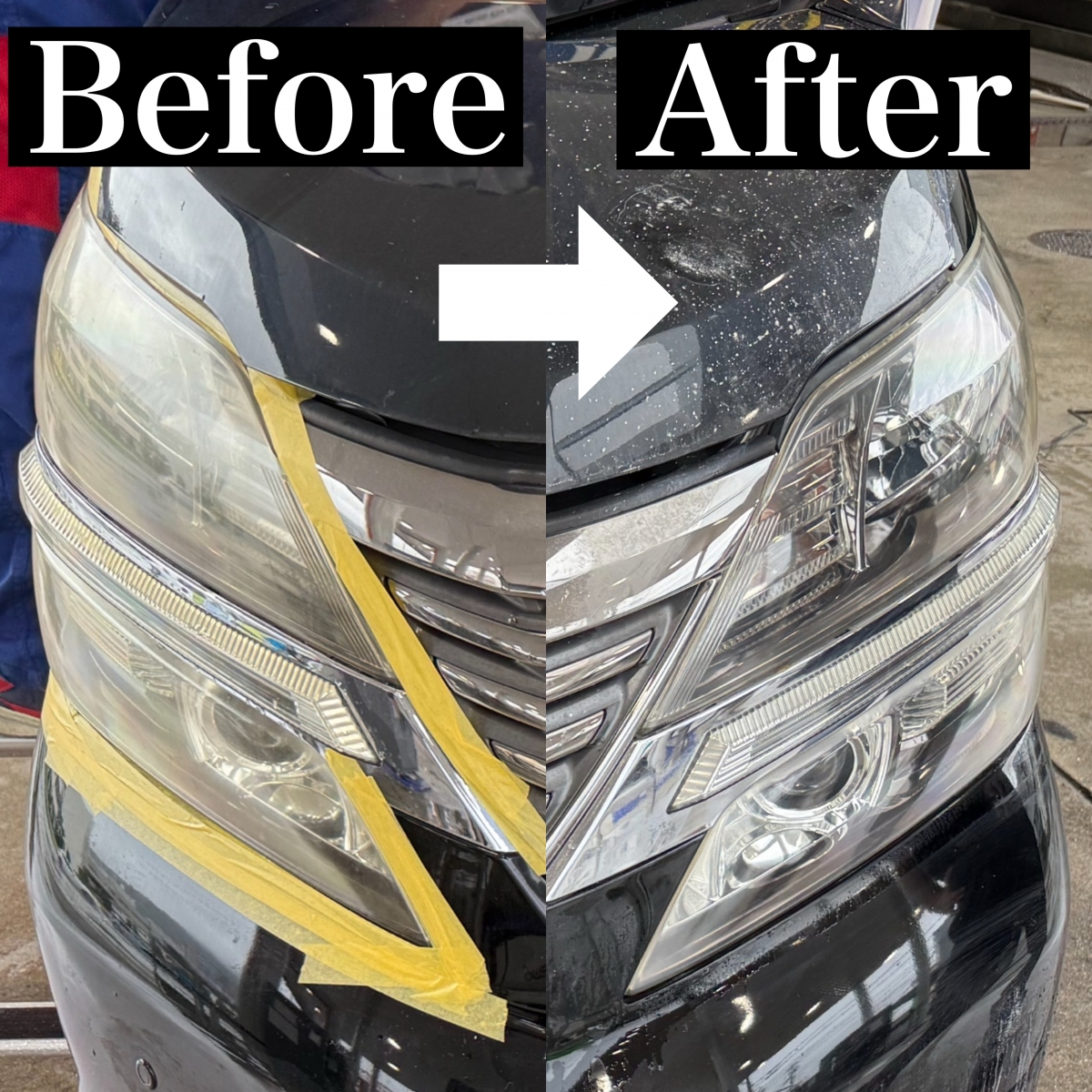 ヘッドライトが白ボケ・黄ばみがある場合、きれいに取り除いてからレンズコーティングを施工します。