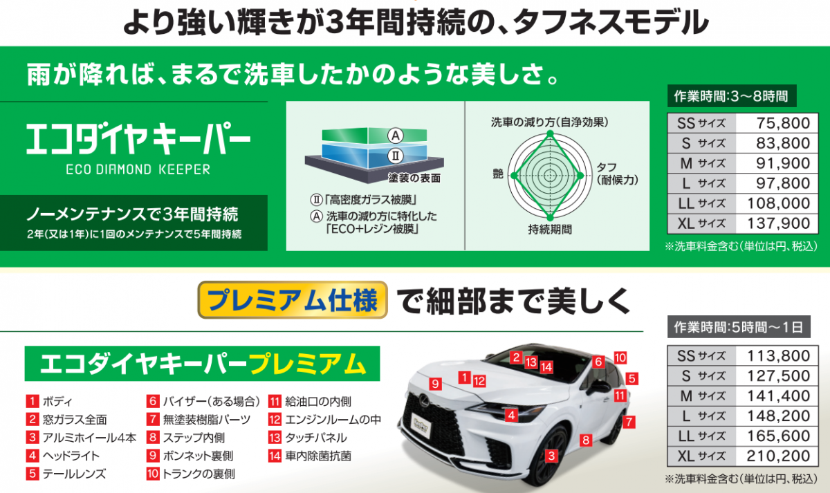 コーティングのスタンダード エコダイヤモンドキーパー【3年プラン】