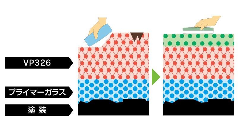 表面と分子構造が同じECO+レジン被膜を補充します。