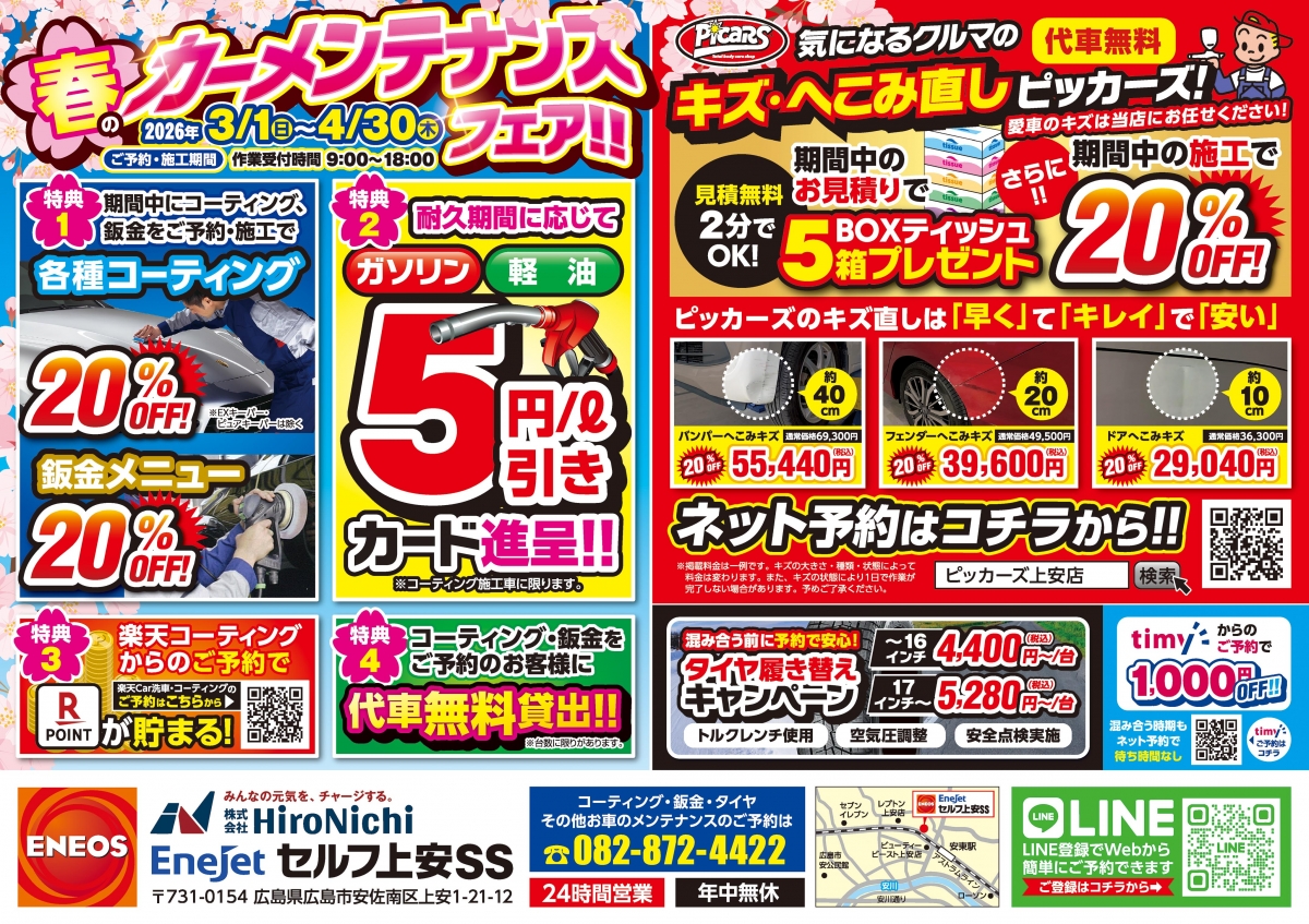 広島市安佐南区にあるセルフ上安SSは2024年9月にリニューアルオープンしました!