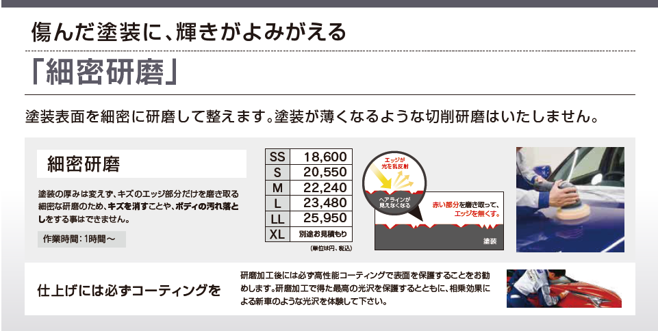 A:私達にお任せ下さい。 電話などで判断しかねる場合、ご一緒にお車を見ながら最適なコースをご提案させていただきます^^