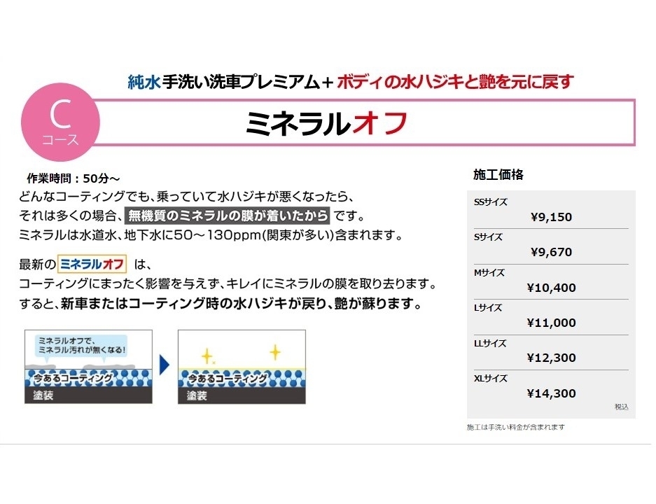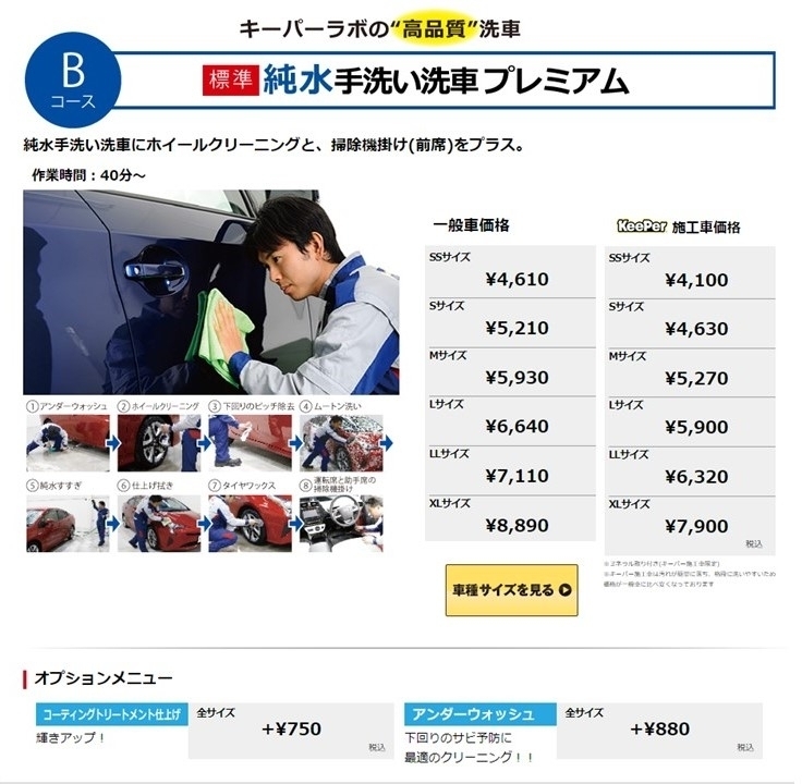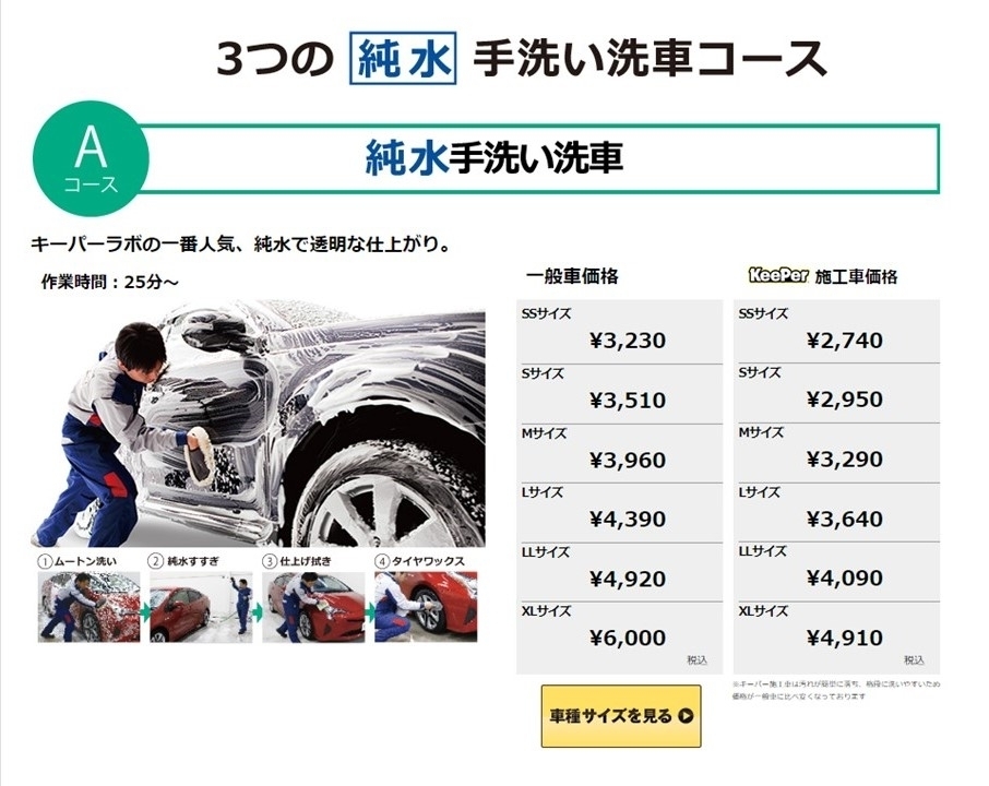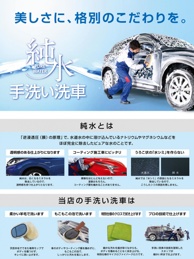 純水仕上げの手洗洗車は愛車にあった3コースをご準備
