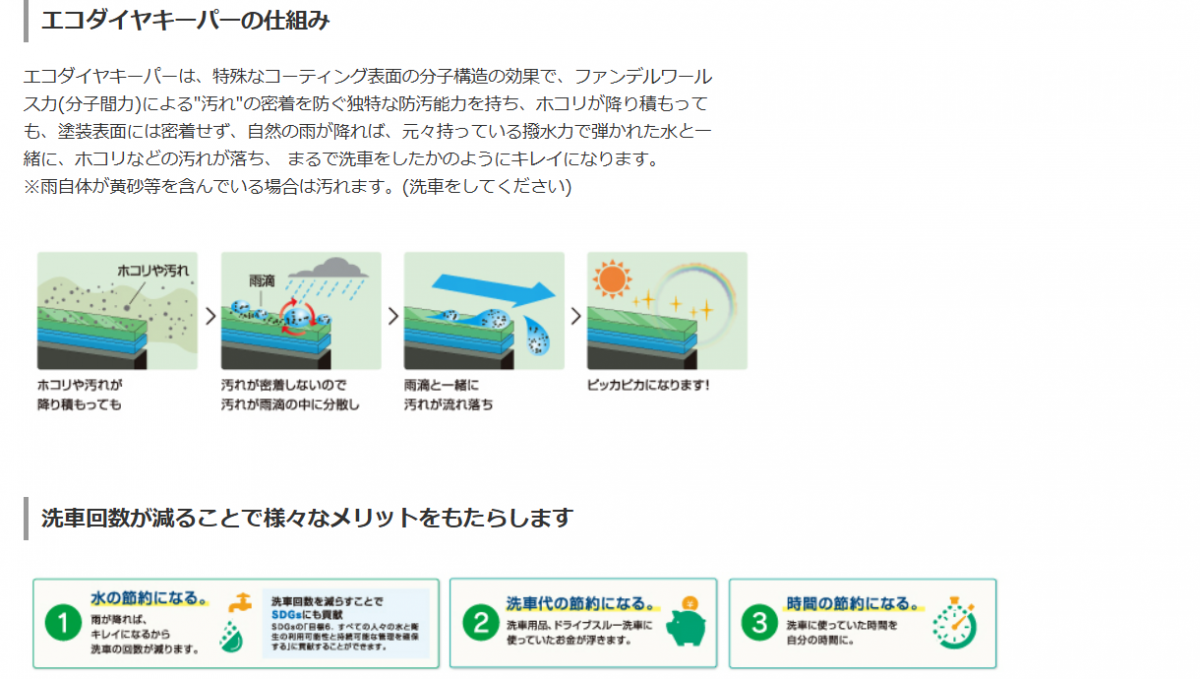 ・汚れにくくなって洗車回数も減る。