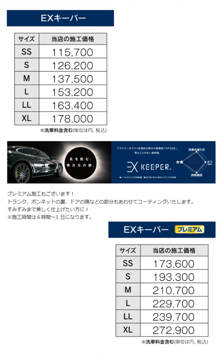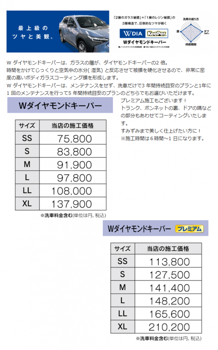 コーティングブース完備、キーパー技術資格者多数で自信を持ってお客様の愛車をキレイにします!