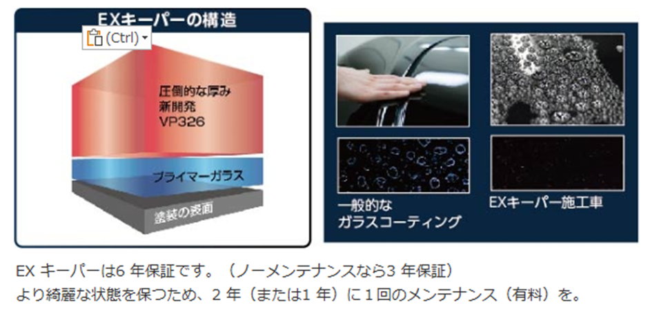 EX キーパーの圧倒的な艶を生む「VP326」の下に定着を良くするプライマーガラスを施工することで目に見えて、新車を超えた艶と美しさを実感できます。