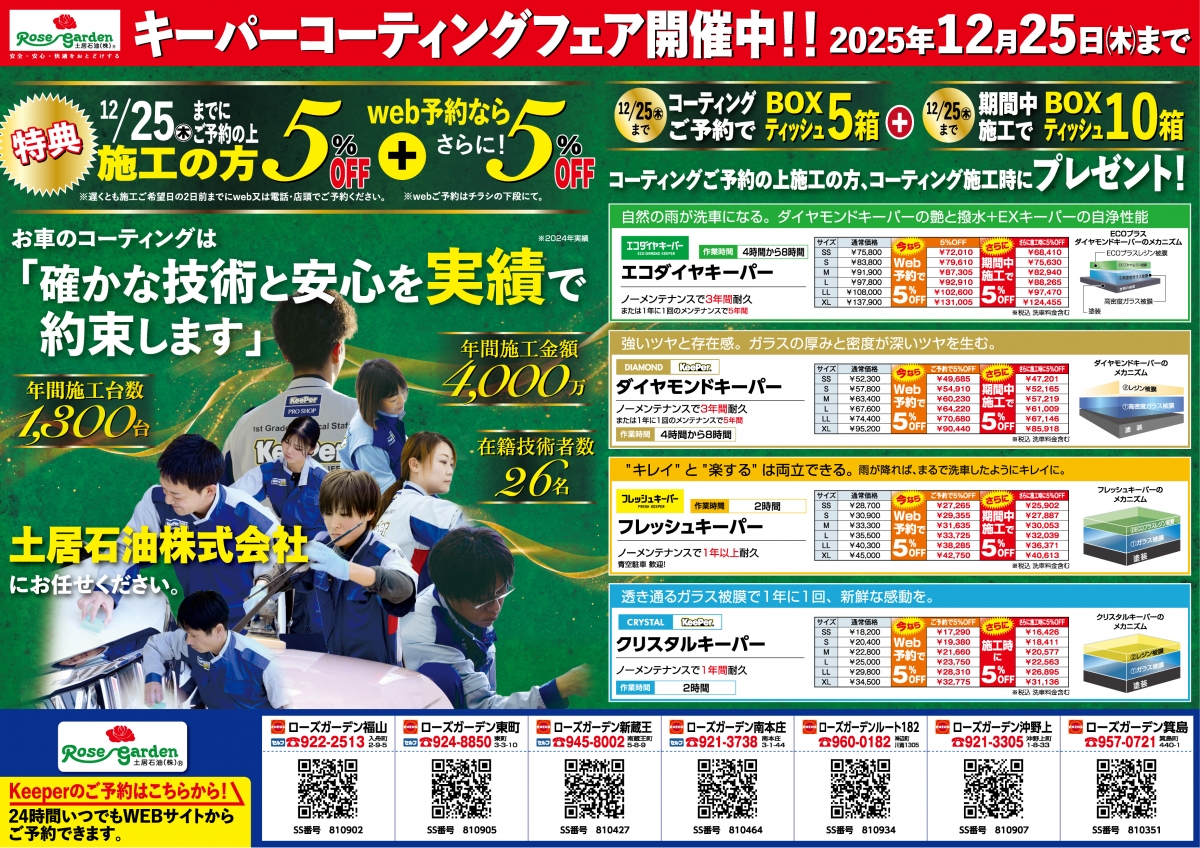 11~12月のコーティング予約も受け付ています。