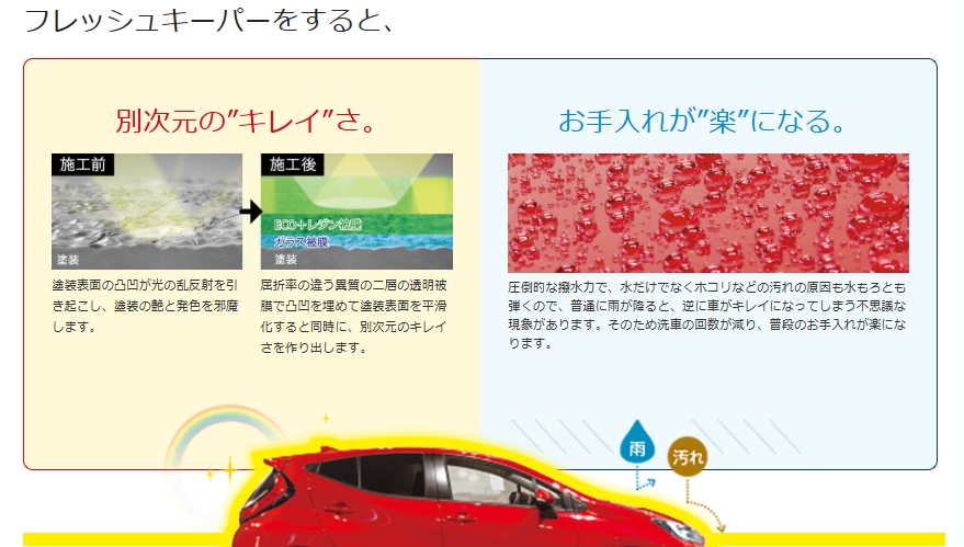 洗車の回数が圧倒的に少なくなるので水や洗剤の使用を減らして環境問題にも貢献できます。
