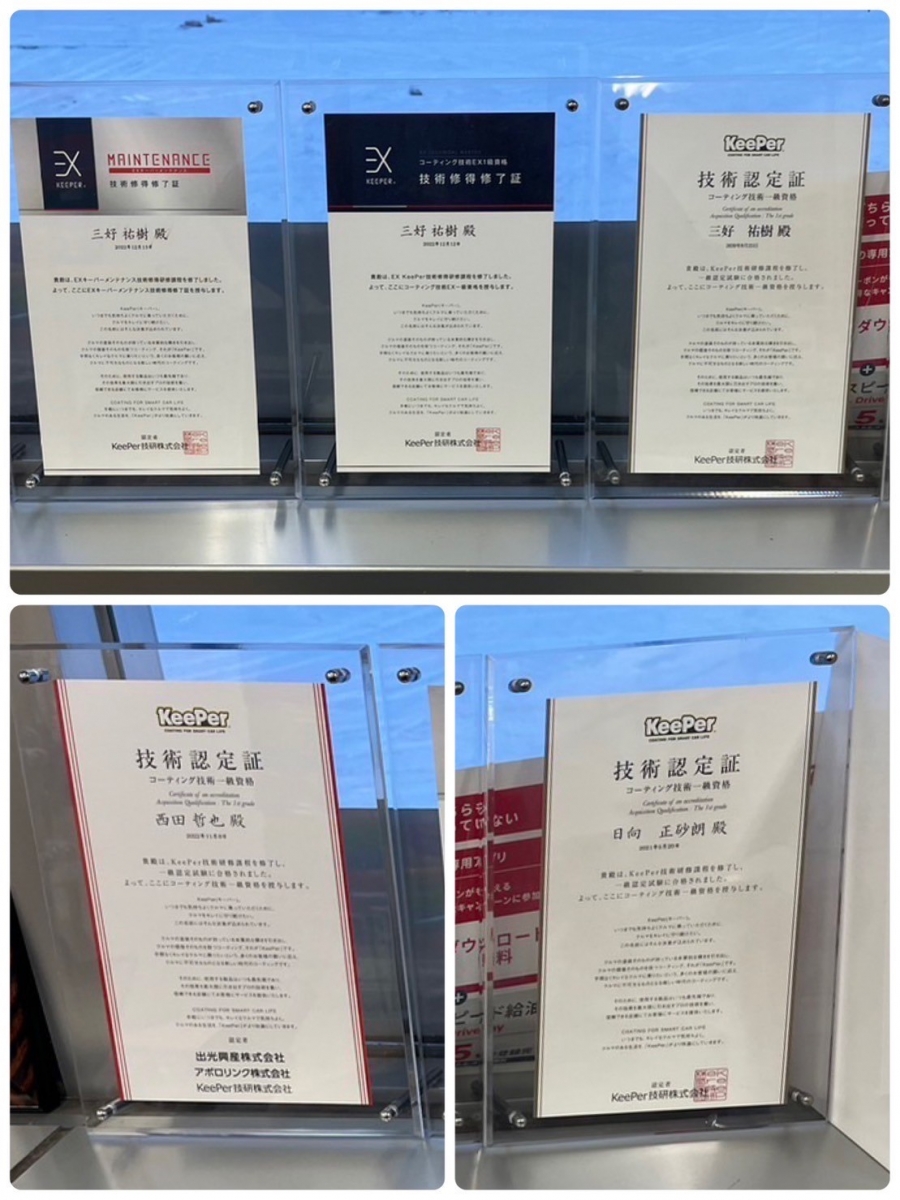 KeePerコーティング技術1級資格者 5名!が在籍しております。
