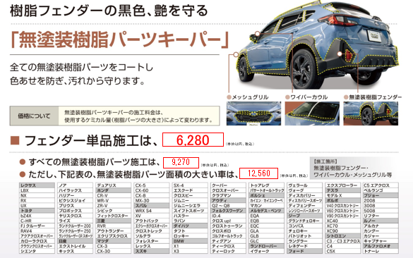 性能A+ランク ECOプラスダイヤモンドキーパー同様、雨で汚れが落ちる独特な防汚能力!施工時間も当日引渡し可能なのでお車を預けてお買い物もOK!青空駐車のお車にうれしいメニューです!