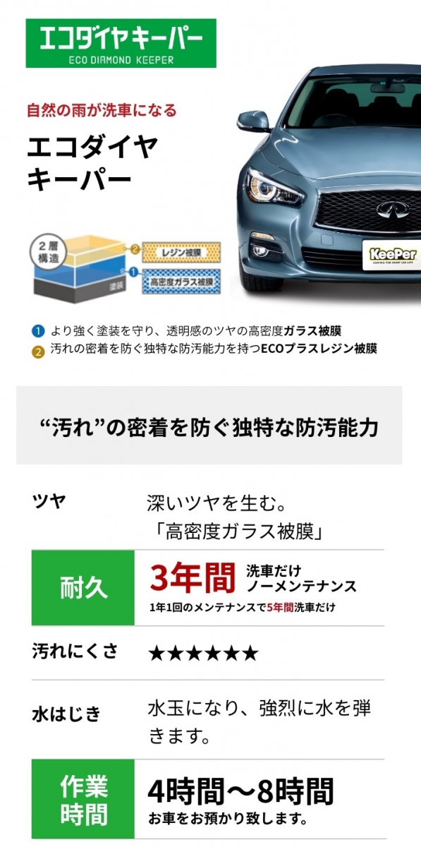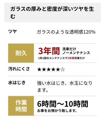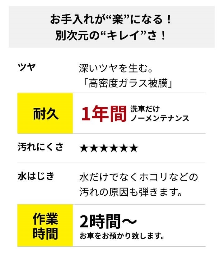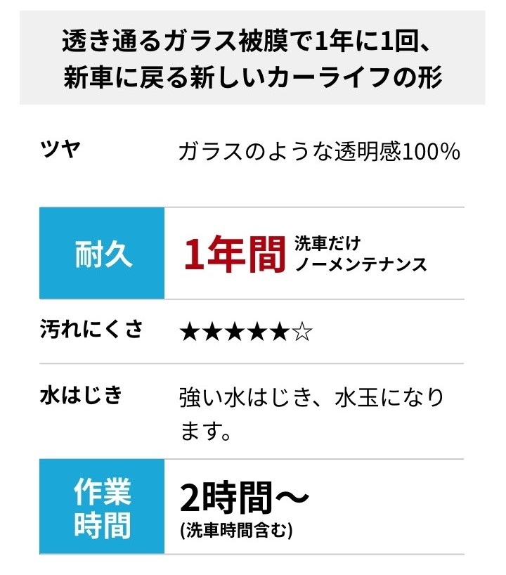 ●メンテナンスをせず洗車だけで3年間持続のプラン