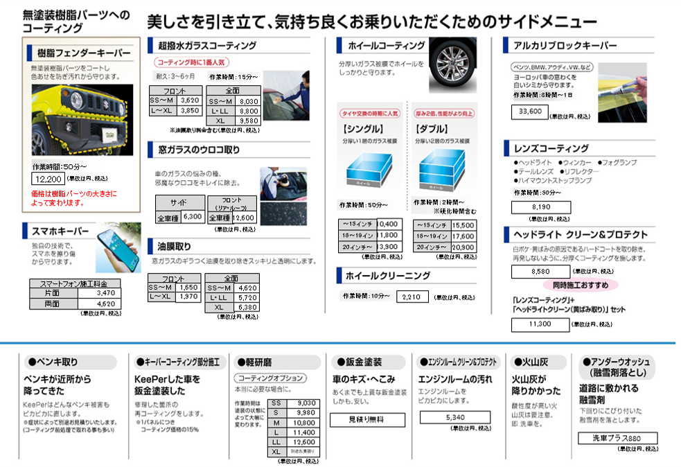 またコーティング、洗車につきましては、お客様の「キレイ」を追及いたします。