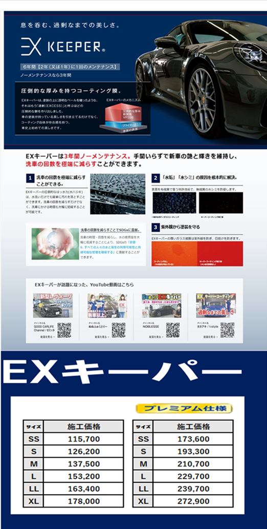 ドイツ、フランス、アメリカ、イギリス、イタリア、日本すべての国の車に施工できます。 特にダイヤモンドキーパーはドイツのSONAX製で、ドイツ本国ではベンツ、BMWなどに純正指定されています。